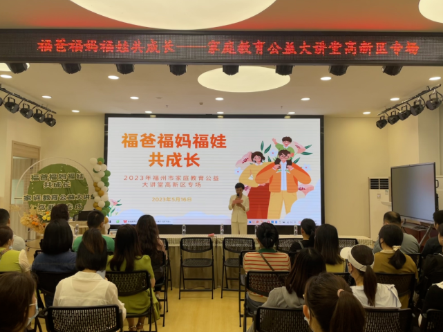 习近平总书记曾说“不论时代发生多大变化,不论生活格局发生多大变化,我们都要重视家庭建设,注重家庭、注重家教、注重家风”。每一个家庭都需要承担起家庭教育的主体责任,提高家庭教育水平和能力。为宣传普及家庭教育知识,引导家长“依法带娃”“科学育儿”,5月16日下午,区妇工委在威尼斯人线上平台 儿童学园开展高新区首场以“福爸福妈福娃共成长”为主题的2023年福州市家庭教育公益大讲堂活动。