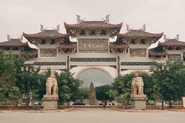万佛寺地处旗山之麓,占地1310亩,风光秀丽,因藏万尊白瓷佛而得名。石松寺,已历千年,是福州佛教圣地之一。现存大雄宝殿是明万历年间修建,坐北朝南,面阔五间,进深七柱,歇山顶,抬梁木质结构,建筑面积800多平方米。殿中斗拱、柱头等采用的是宋代的榫卯连接构筑方法,在福州地区同期建筑中少见。