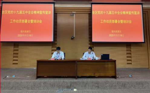11月19日下午,高新区召开党的十九届五中全会精神宣传宣讲工作部署会暨培训会,学习宣传贯彻党的十九届五中全会精神,并对我区下一步宣传工作进行动员部署和培训。会议由区党群工作部部长谢在秀主持,区党工委副书记林勉建作动员部署讲话。
